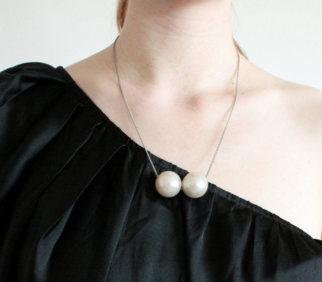 Ten subtelny naszyjnik z dwoma lekkimi syntetycznymi koralikami o perłowym połysku będzie wspaniałą kropką nad "i" dla Twojej wieczorowej i codziennej stylizacji..