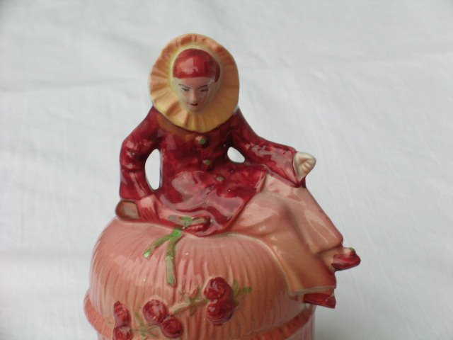 Duże puzdro z masy porcelanowej. Wyjątkowo zdobione, ręcznie malowane, przestrzenne, na błyszcząco szkliwione. Nie sygnowane. 12 x 9,5 x 16 cm. Stan zachowania bardzo dobry. Wyjątkowe.