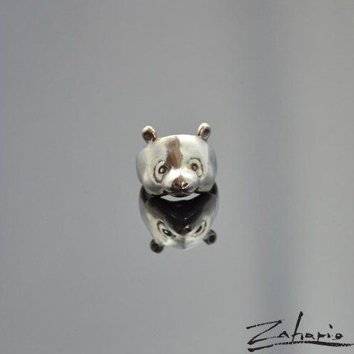 Ręcznie robiony pierścień z ozdobą w kształcie głowy misia pandy, w całości ze srebra 925.