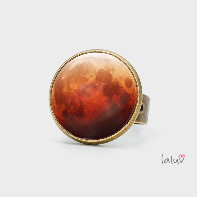 Ręcznie robiony pierścionek z wysokiej jakości grafiką zamkniętą pod wypukłym szkiełkiem i oprawioną w bazę w kolorze antycznego złota.