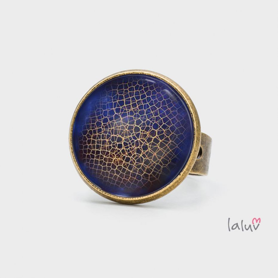 Ręcznie robiony pierścionek z wysokiej jakości grafiką zamkniętą pod wypukłym szkiełkiem i oprawioną w bazę w kolorze antycznego złota.