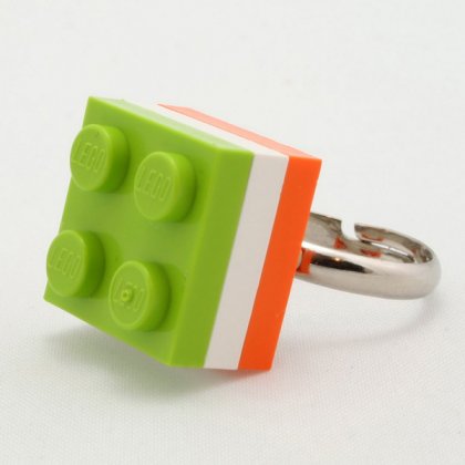 Pierścionek DUBLIN. Wykonany z nowych klocków LEGO® w niepospolitych kolorach. Wymiary klocka 1,55 x 1,55 x 1,2 cm. Wysokiej jakości baza, regulowana od ok.16 do ok.19 mm - rozmiary od 11 do 18.