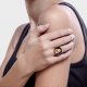 Obwód pierścionka jest regulowany, więc będzie pasował na wszystkie, nawet najbardziej nietypowe palce.
