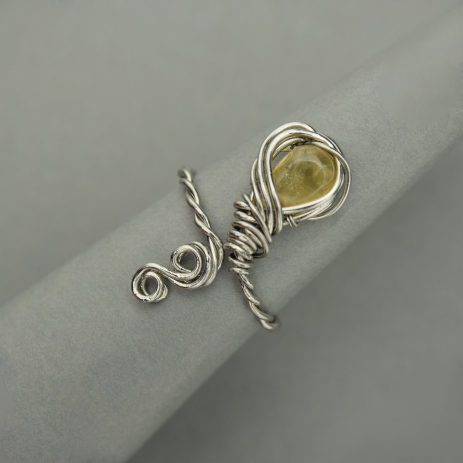 PIERŚCIONEK REGULOWANY CYTRYN, WIRE WRAPPING STAL CHIRURGICZNA