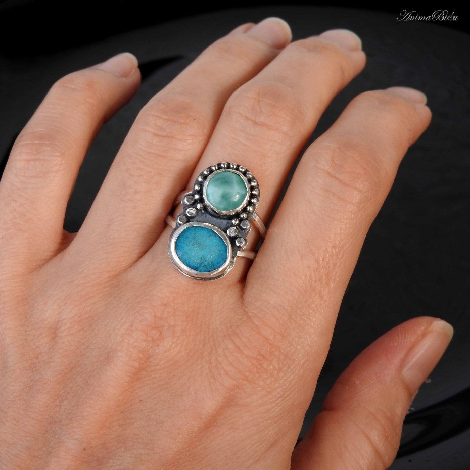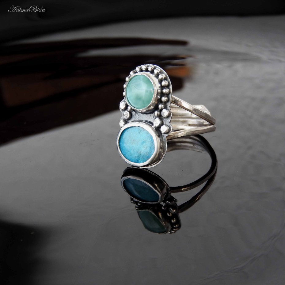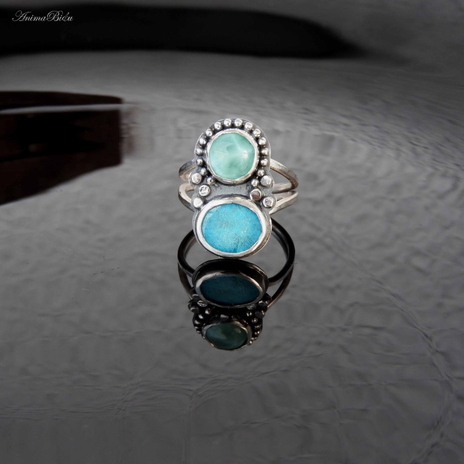 Tagi: #na prezent dla niej, #pierścionek regulowany, #pierścionek z larimarem, #pierścionek z turkusem