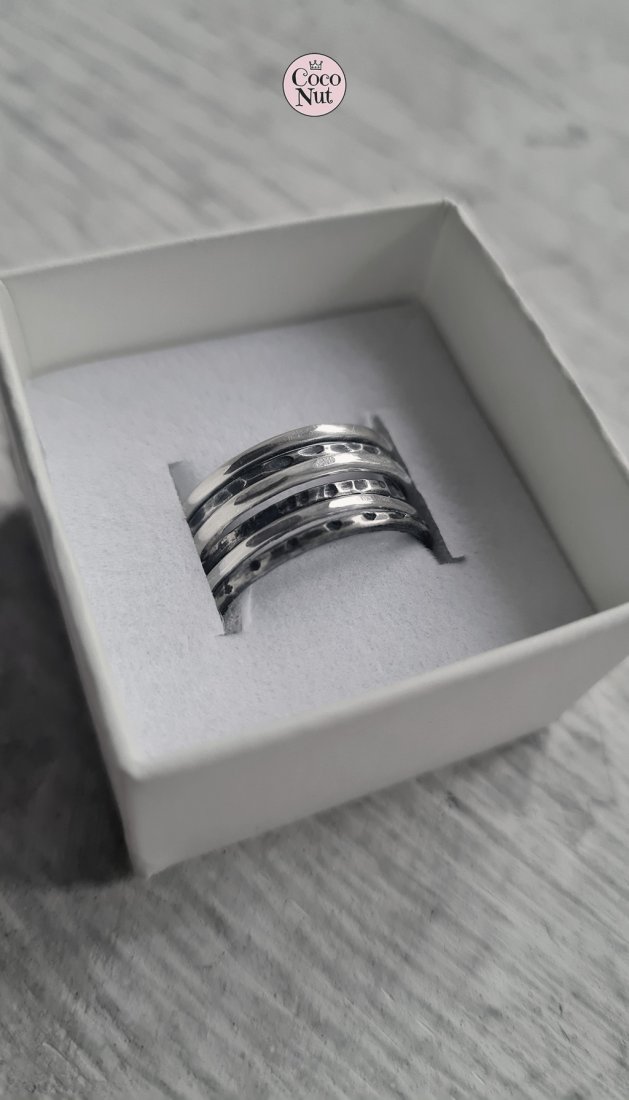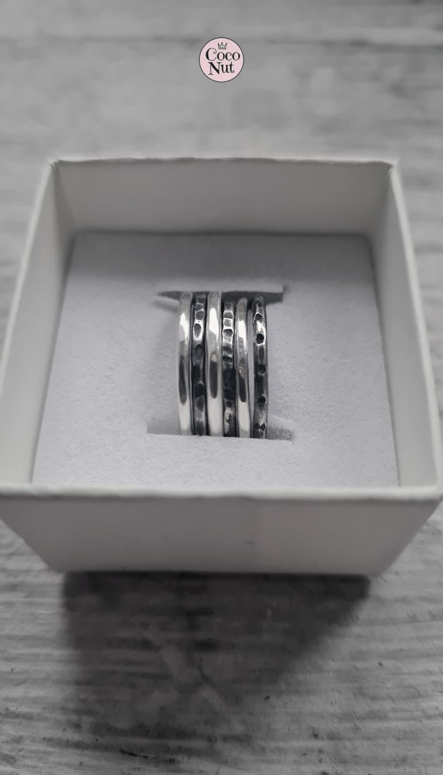 Komplet 6 grubych obrączek ze srebra 925/930, o szerokości ok. 1,7 mm.
