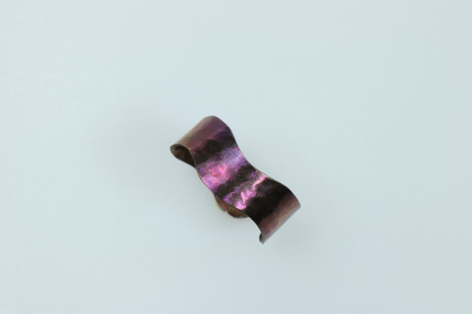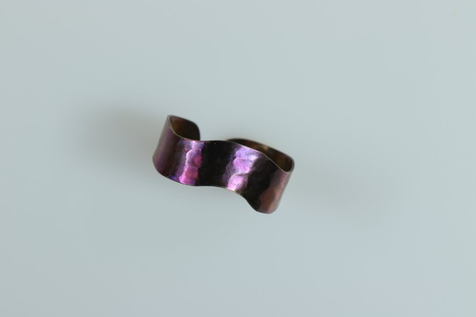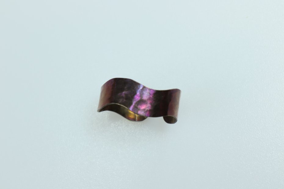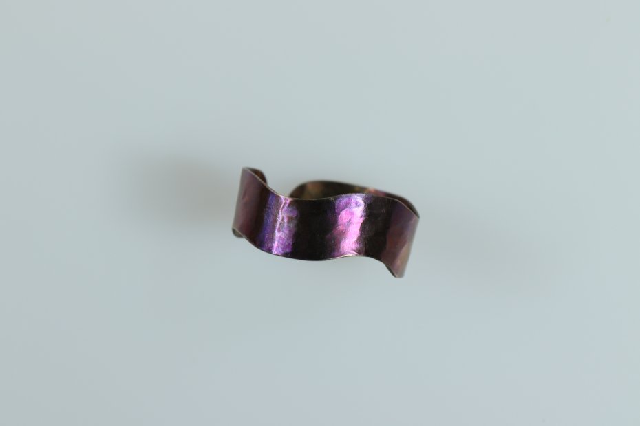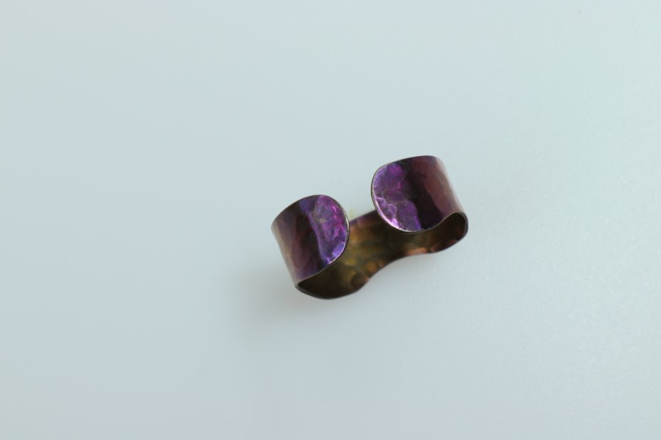 Ręcznie wykonany pierścionek z tytanu Grade I. Tytan anodowany i repusowany. Pierścionek jest bardzo lekki i hipoalergiczny. Szerokość pierścionka 0.9cm a średnica 1.8 cm (regulowana).