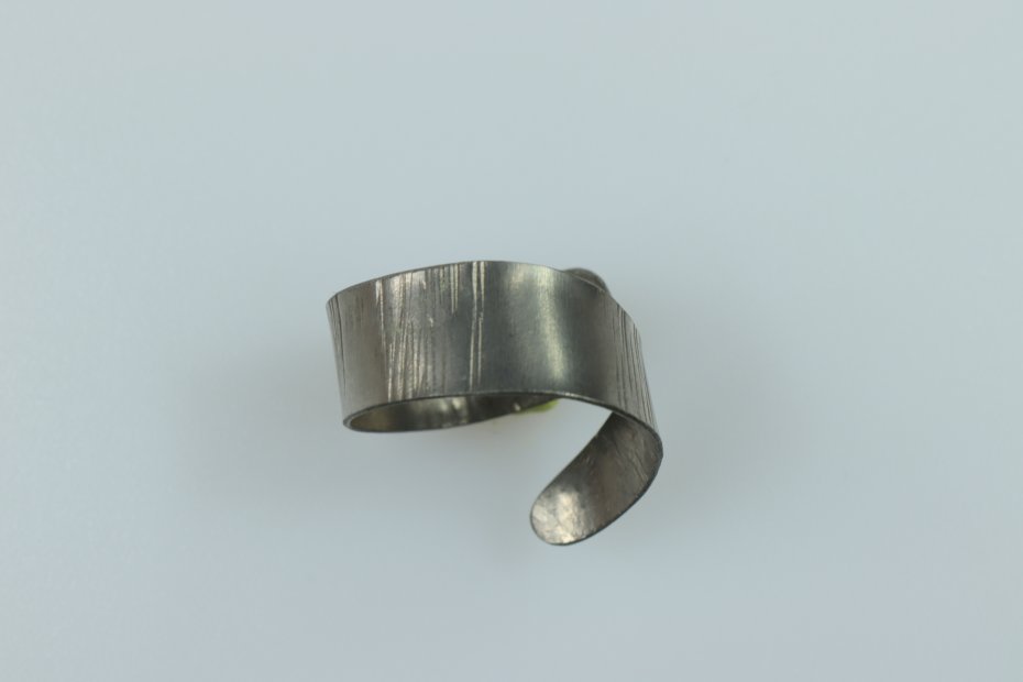 Ręcznie wykonany pierścionek z tytanu Grade I. Tytan szczotkowany. Pierścionek jest bardzo lekki i hipoalergiczny. Szerokość pierścionka 1,5 cm. Średnica regulowana 1,7 cm.