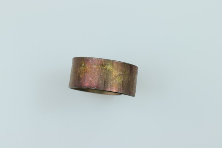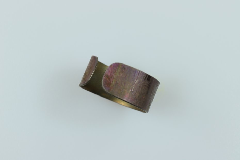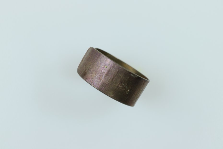 Ręcznie wykonany pierścionek z tytanu Grade I. Tytan anodowany i szczotkowany. Pierścionek jest bardzo lekki i hipoalergiczny. Szerokość pierścionka 0.9 cm a średnica 1,9 cm (regulowana).