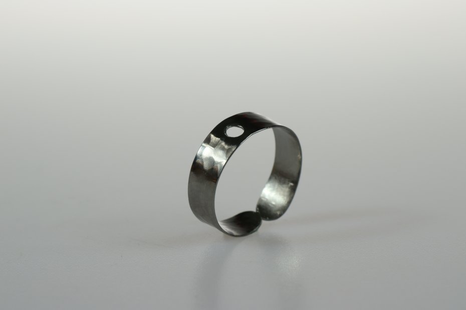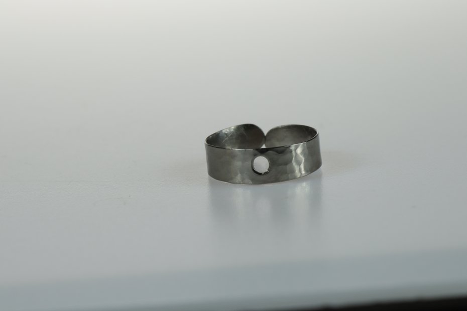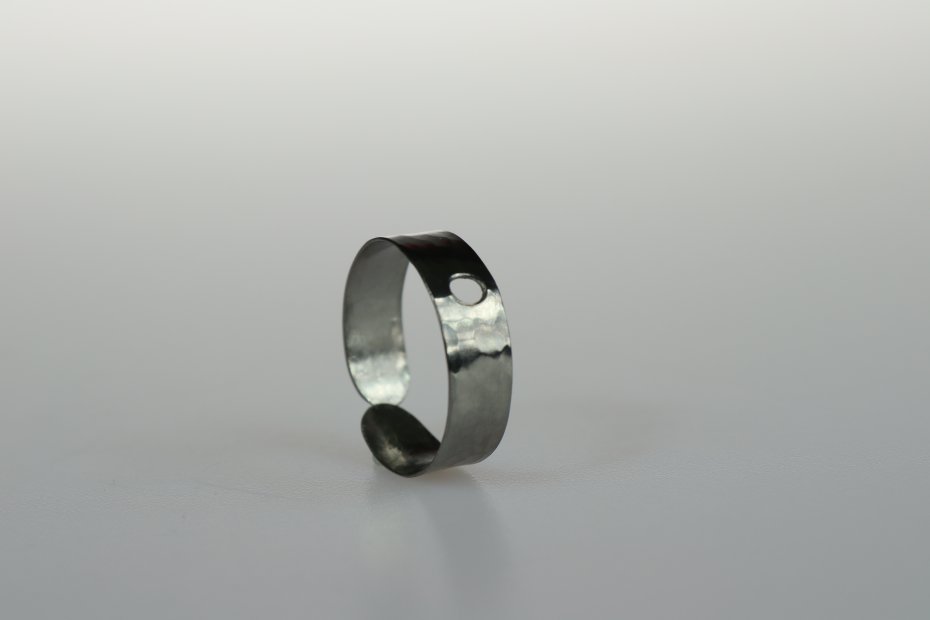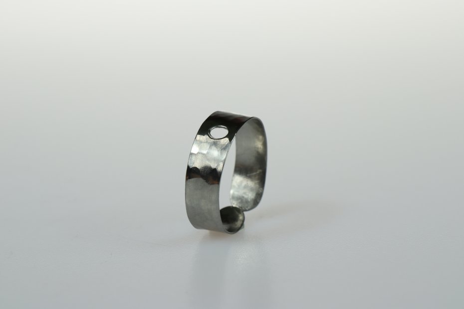 Ręcznie wykonany pierścionek z tytanu Grade I. Tytan satynowany. Pierścionek jest bardzo lekki i hipoalergiczny. Szerokość pierścionka 0.6 cm a średnica 2 cm (regulowana).