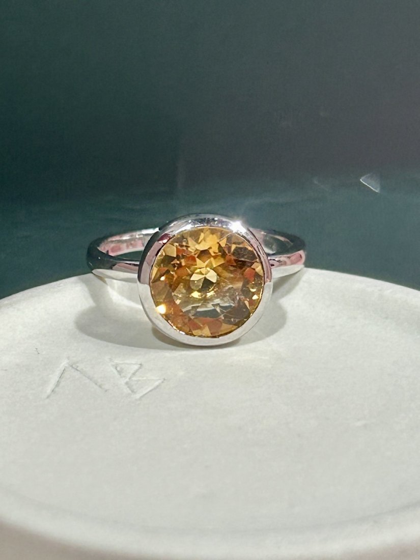 W prostej oprawie bezel piękny cytryn prawdziwy (ulepszany).