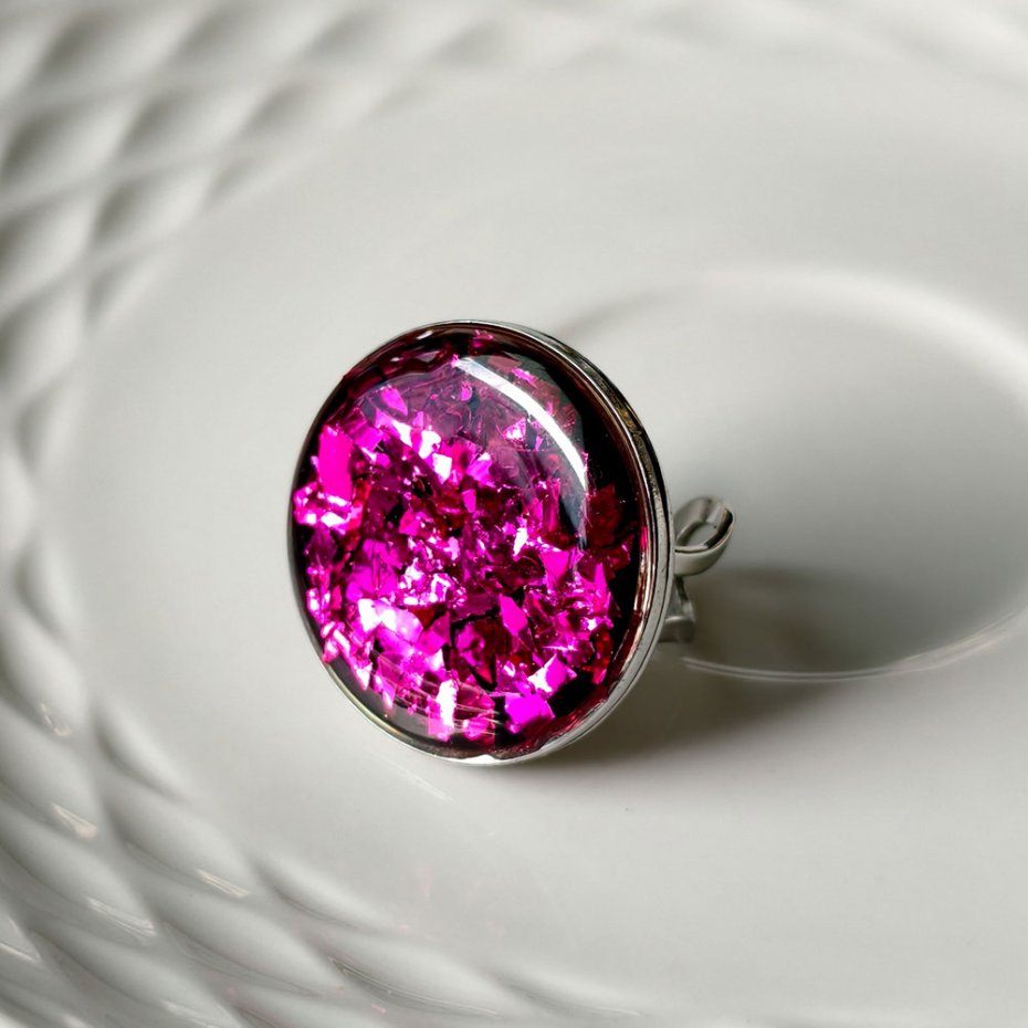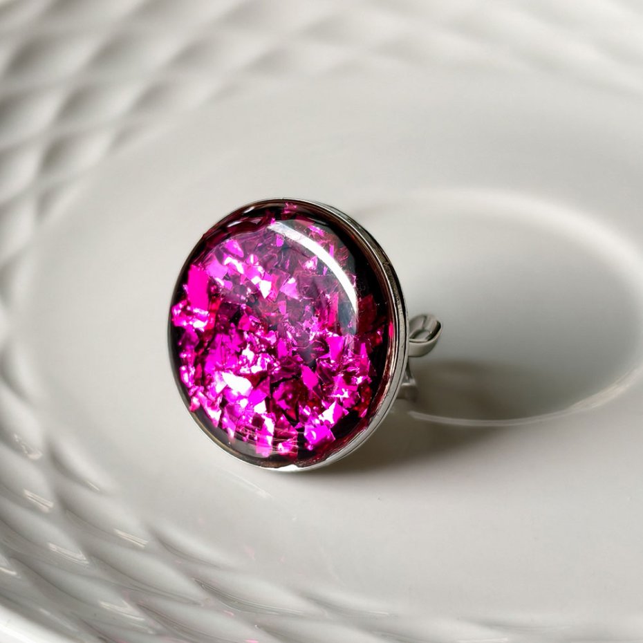 Ręcznie robiony pierścionek ze stali szlachetnej i żywicy to wyjątkowy dodatek dla osób ceniących oryginalną ręcznie robioną biżuterię. Każdy egzemplarz powstaje z dbałością o detale, dzięki czemu jest niepowtarzalny i jedyny w swoim rodzaju. Połączenie trwałej stali szlachetnej z różowymi drobinkami zatopionymi w żywicy nadaje pierścionkowi nowoczesny, a jednocześnie elegancki charakter.