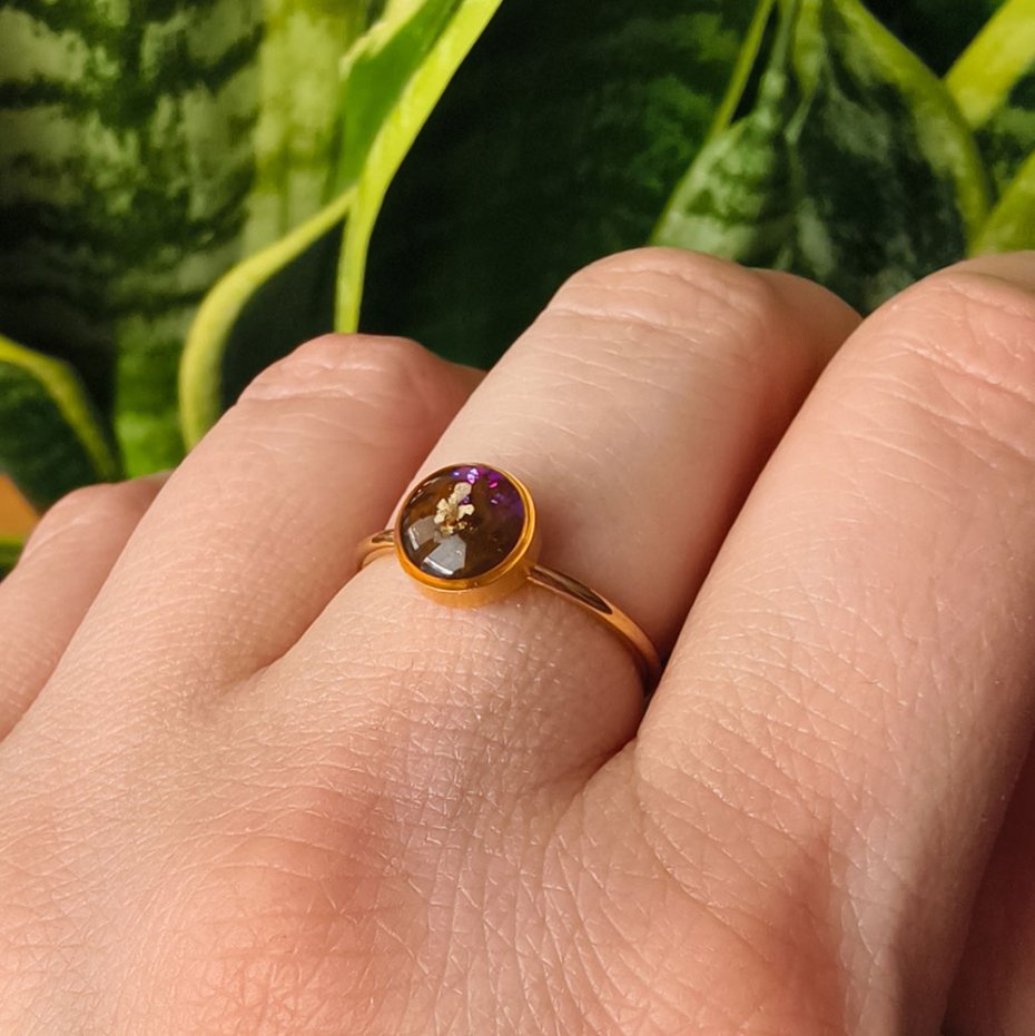 Ten pierścionek to coś więcej niż ozdoba – to pamiątka chwili, symbol pamięci i bliskości natury. Idealny jako prezent lub osobisty talizman dla miłośników rękodzieła i biżuterii z naturalnych kwiatów.