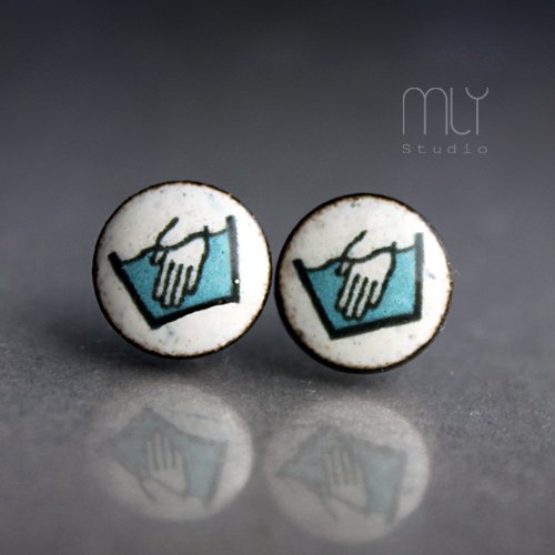 Ceramiczne okrągłe kolczyki, ręcznie wykonane z delikatnej gliny kamionkowej, jednostronnie szkliwione mieszanką szaro beżowych szkliw z efektem plamek, dekorowane autorska kalką ceramiczną,na antyalergicznych sztyftach w kolorze srebrnym. Średnica ok. 11mm. Polecam . Termin realizacji zamówienia to 1-2 dni.