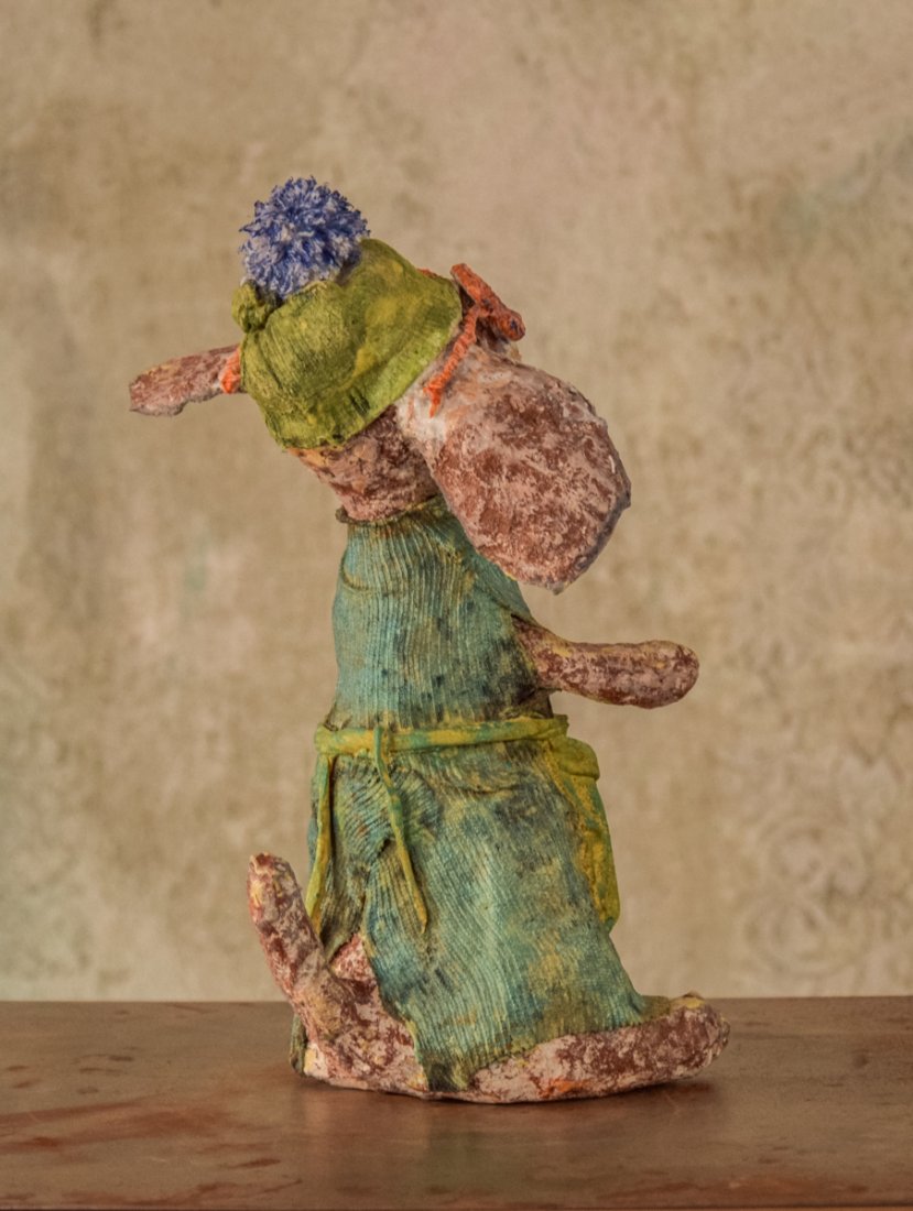 Ręcznie wykonana figurka psa w energetycznych kolorach wnosi humor, radość i niebanalny styl do każdego wnętrza. Wyraziste detale i zabawny strój sprawiają, że staje się centralnym punktem salonu, pracowni czy sypialni.