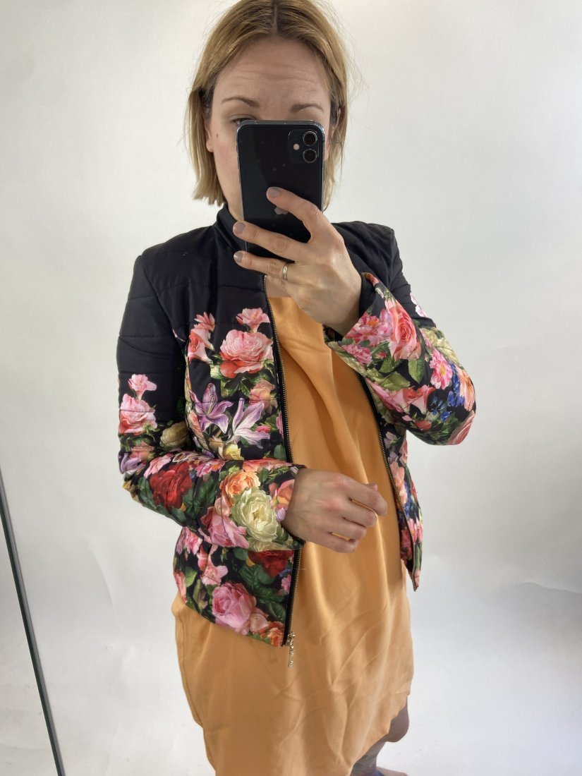 Przepiękna, lekka pikowana kurteczka w kwiaty. Zapinana na zamek + kieszonki też na zamek (kryty).