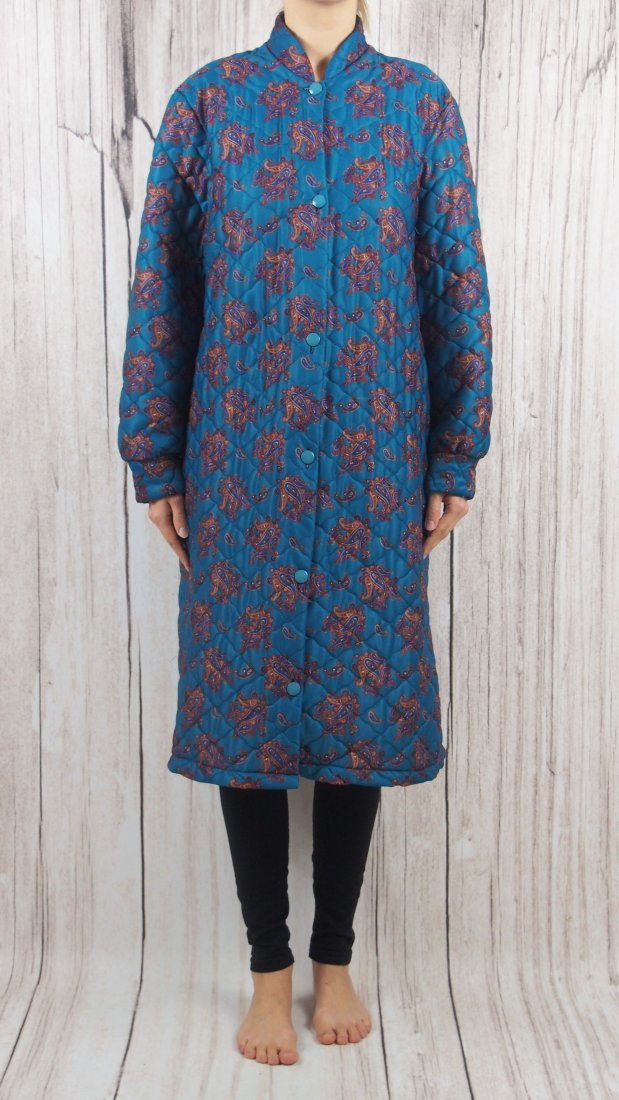 Boski pikowany płaszczyk. Wzór cudny, kolorki intensywne (morski - jakby nie było widać na zdjęciach), jedyna wada to to, że nie ma kieszeni. Nie jest to ciuszek zimowy, raczej jesienno-wiosenny
