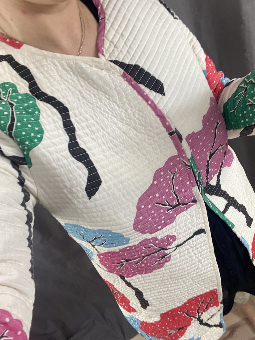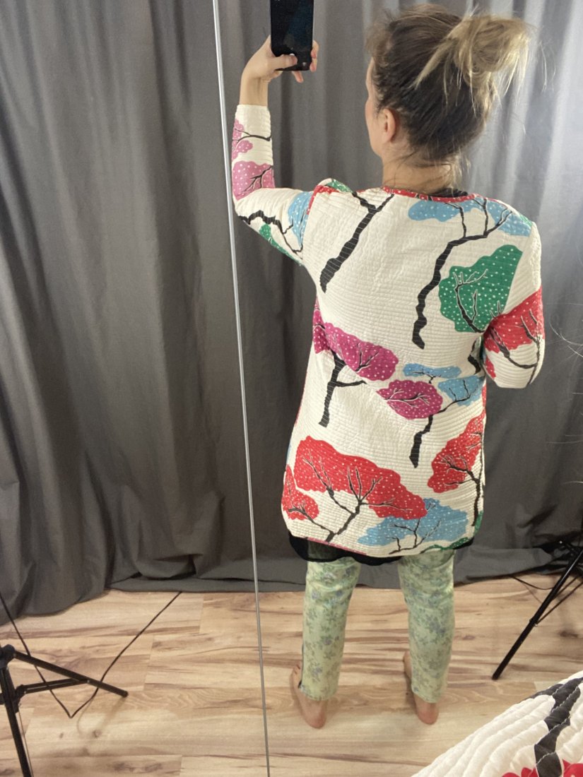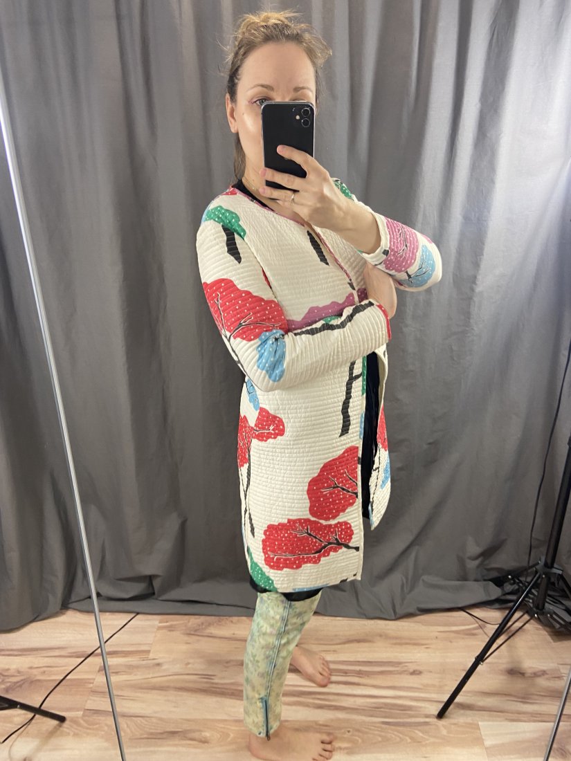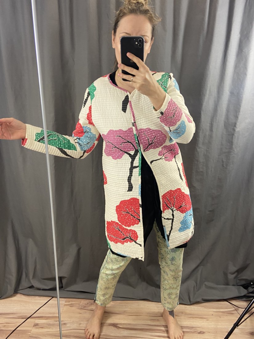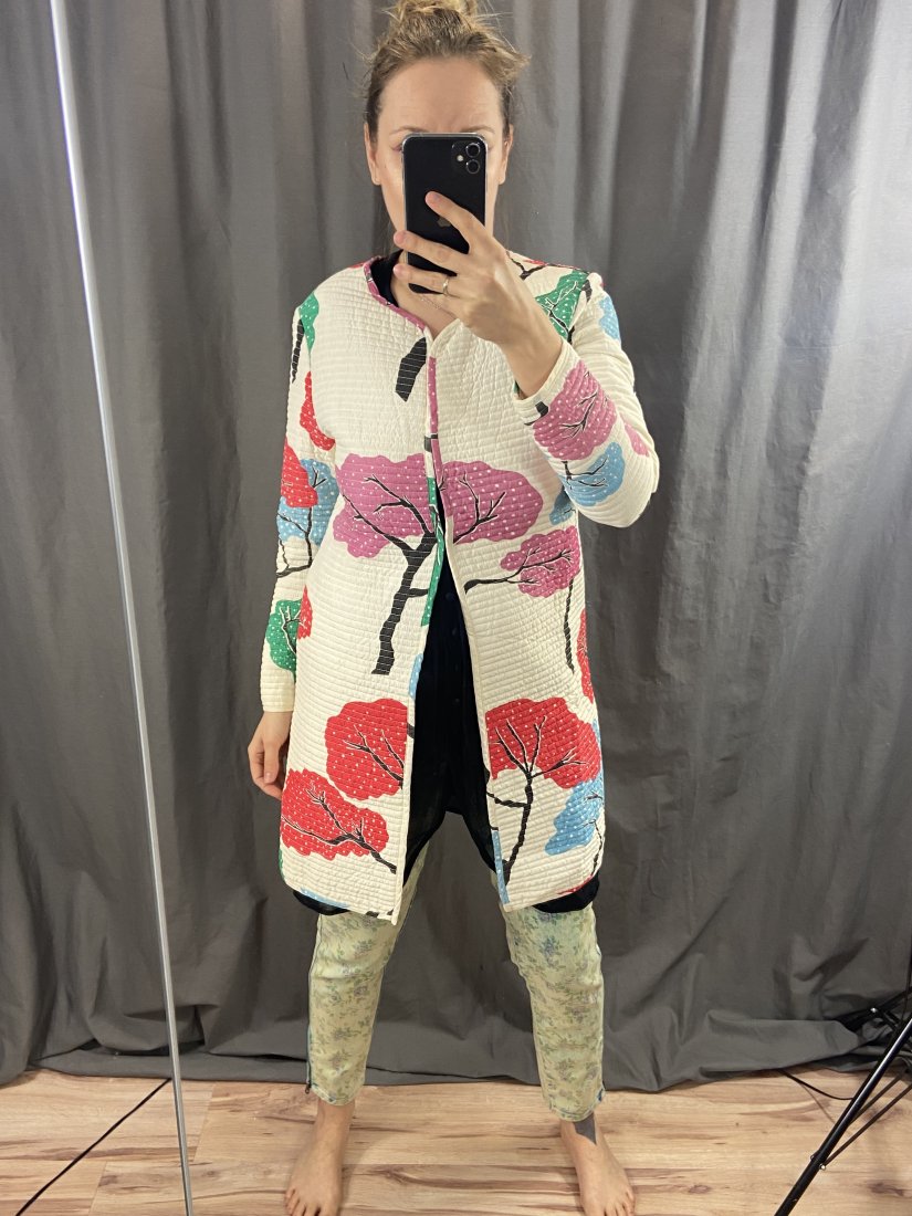 PŁaszczyk pikowany, organiczne, naturalne materiały. Kopenhaskiej projektantki Tiny Casmose. Leciutki, idealo na okres wiosenno-letni. Nie ma metki ze skłądem, ale to jest bawełna z jedwabiem.