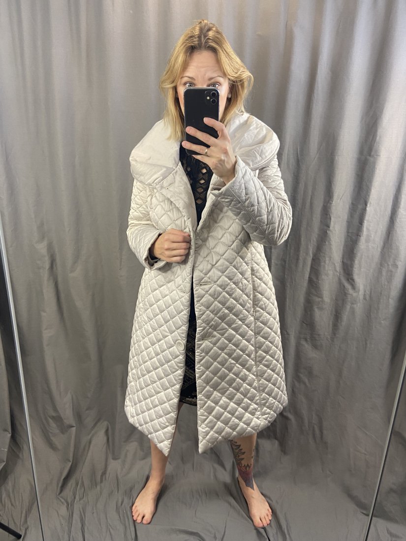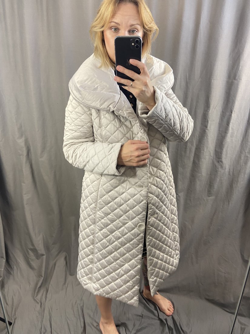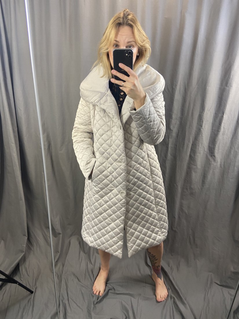 Tagi: #długi płaszcz, #pikowany płaszcz, #srebrny płaszcz, #zimowy płaszcz