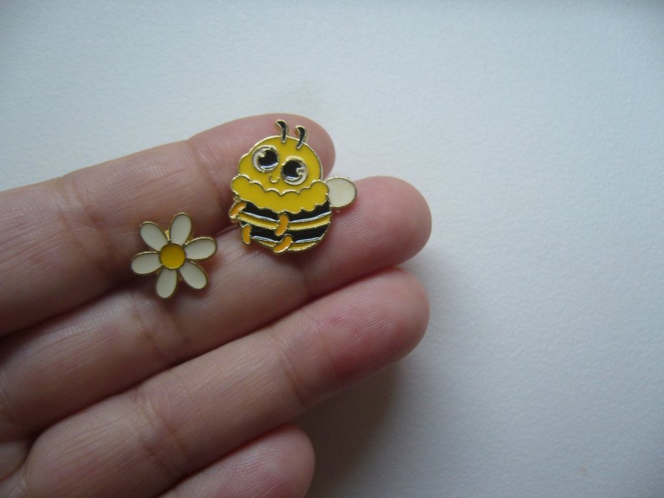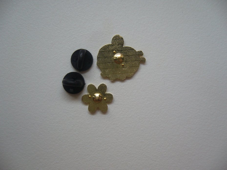 METALOWA EMALIOWANA PIN PRZYPINKA BROSZKA BĄCZEK I KWIATEK - 2 SZTUKI