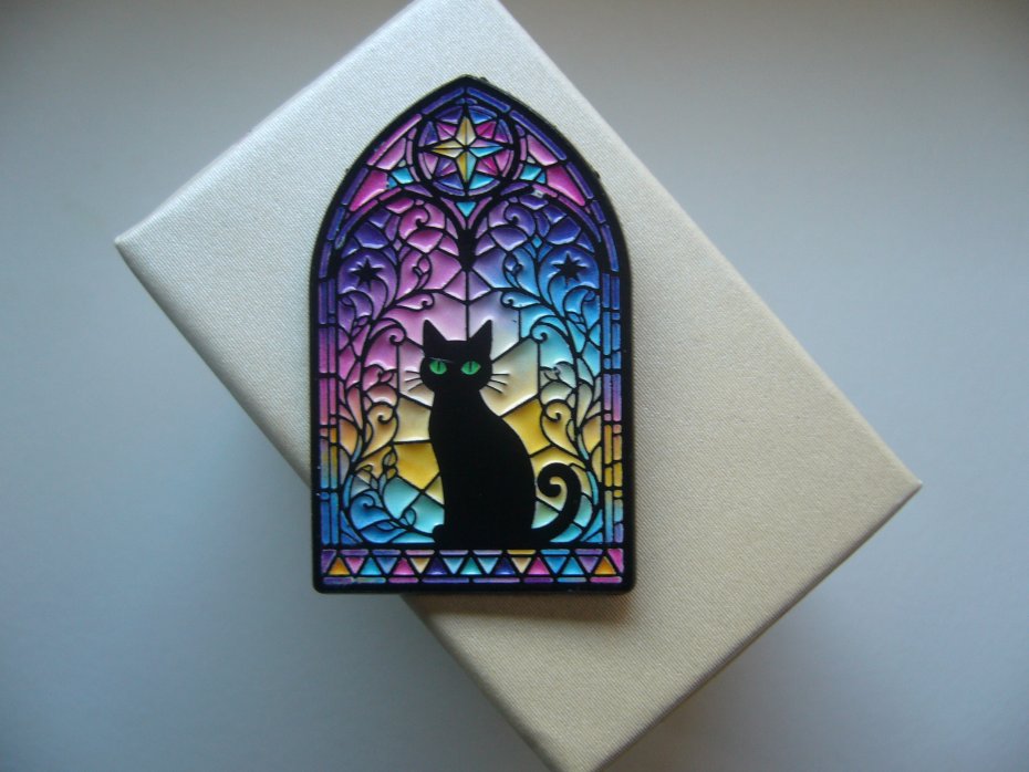 METALOWA EMALIOWANA PIN PRZYPINKA BROSZKA CZARNY KOT