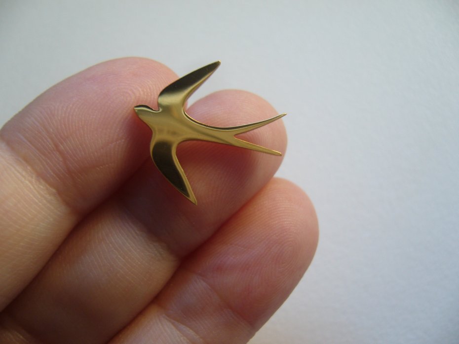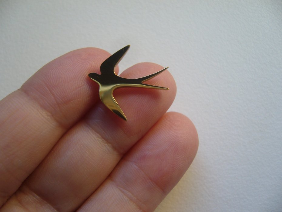 PIN PRZYPINKA BROSZKA JASKÓŁKA WYKONANA ZE STALI NIERDZEWNEJ ,PIĘKNIE LŚNI W SŁOŃCU