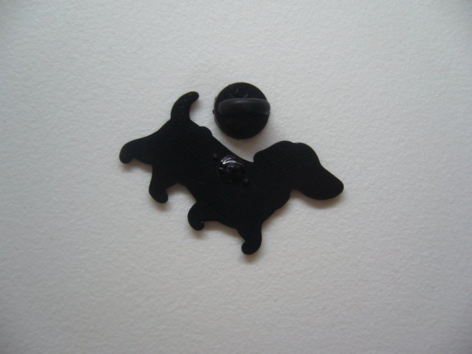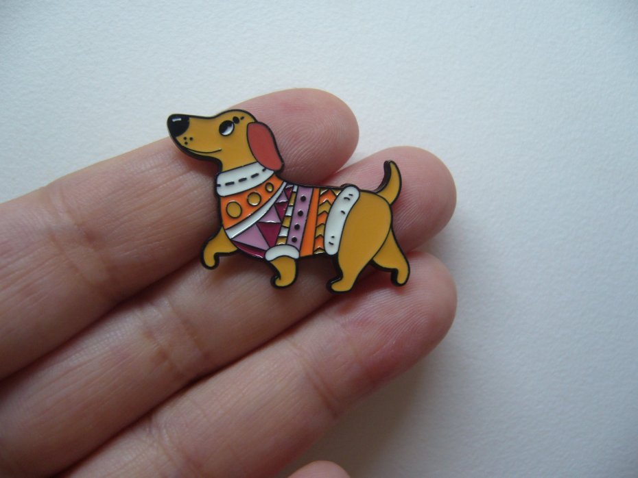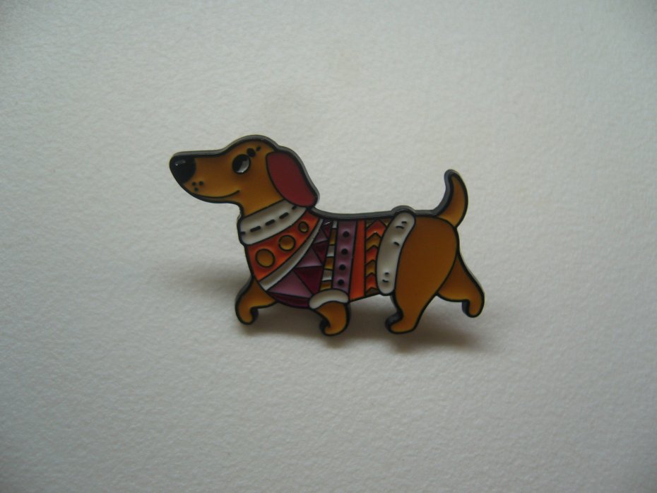 METALOWA EMALIOWANA PIN PRZYPINKA BROSZKA PIES JAMNIK W SWETERKU