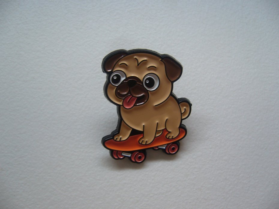 METALOWA EMALIOWANA PIN PRZYPINKA BROSZKA PIES MOPS NA DESKOROLCE