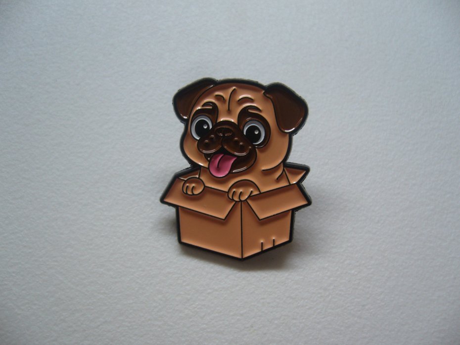 METALOWA EMALIOWANA PIN PRZYPINKA BROSZKA PIES MOPS W KARTONIE