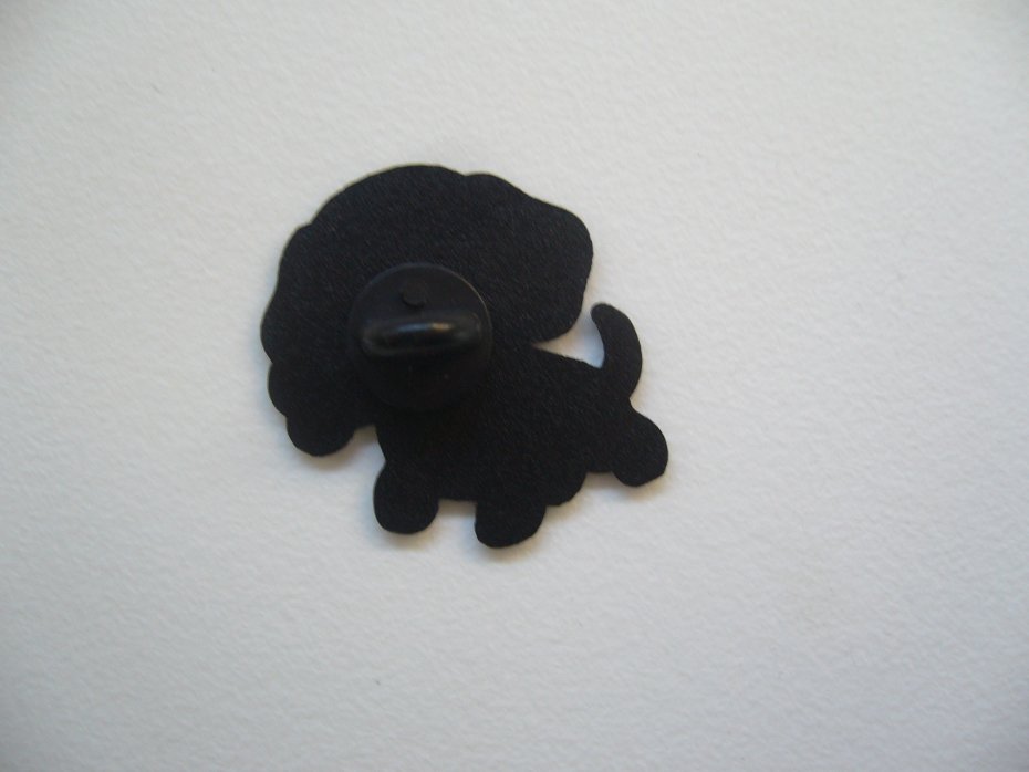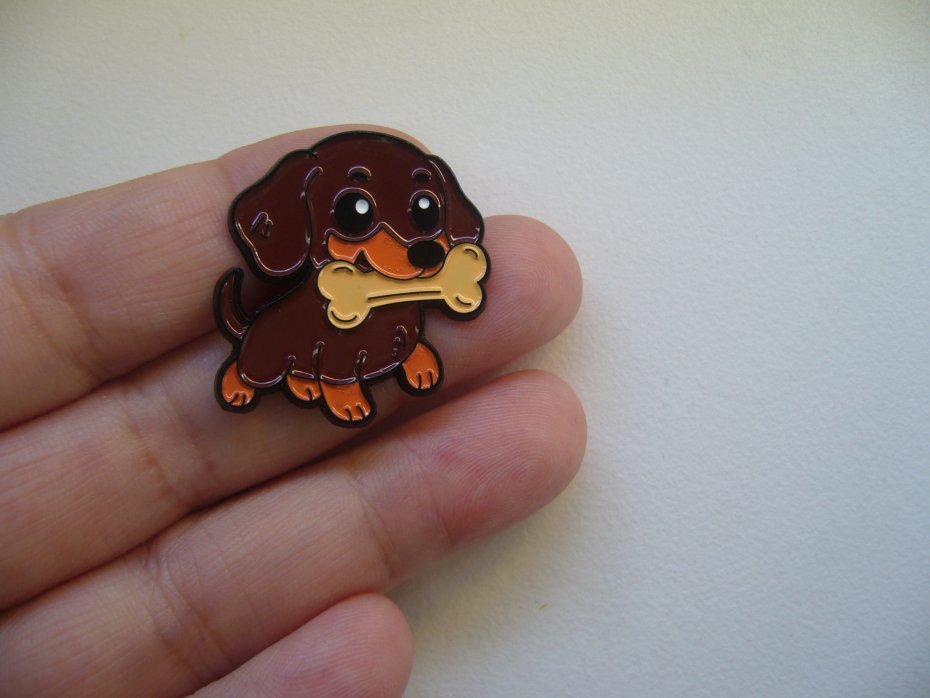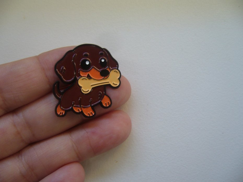 METALOWA EMALIOWANA PIN PRZYPINKA BROSZKA PIES PIESEK JAMNIK Z KOŚCIĄ