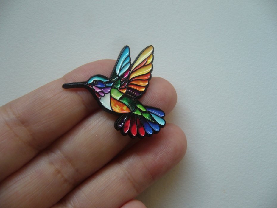 METALOWA EMALIOWANA PIN PRZYPINKA BROSZKA PTAK KOLIBER