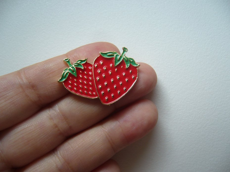 Urocza metalowa emaliowana pin przypinka broszka truskawki