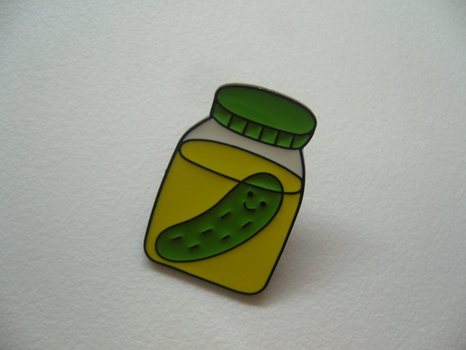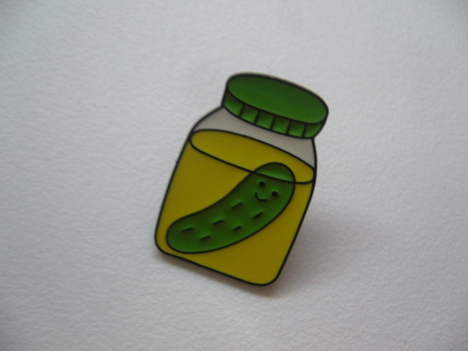METALOWA EMALIOWANA PIN PRZYPINKA BROSZKA WESOŁY OGÓREK W SŁOIKU