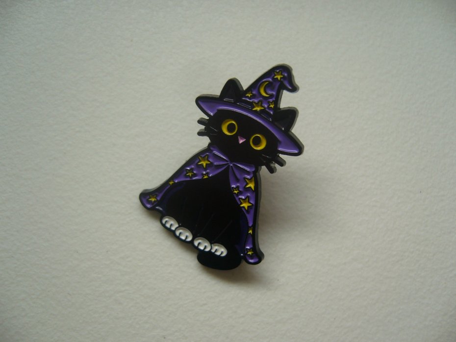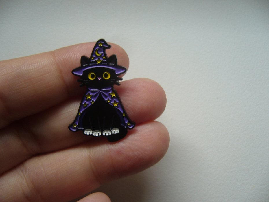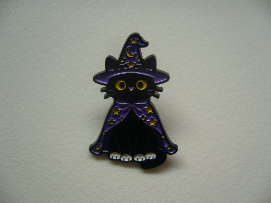 METALOWA PIN PRZYPINKA BROSZKA CZARNY KOT KOTEK CZARODZIEJ