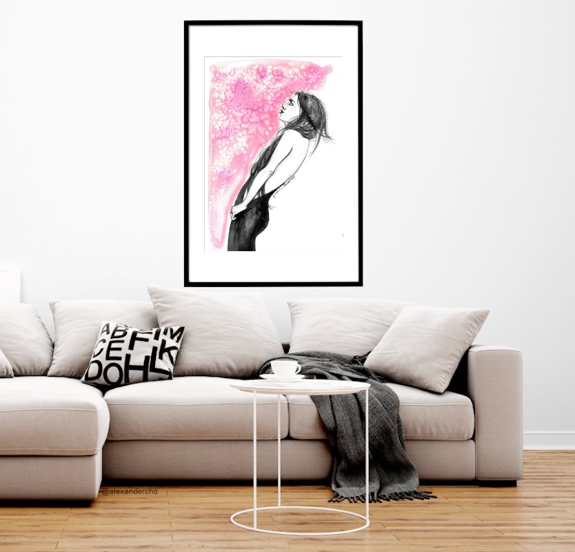 wydruk cyfrowy w formie plakatu z autorskiej akwareli i/lub rysunku tuszem (ręcznie malowanej),