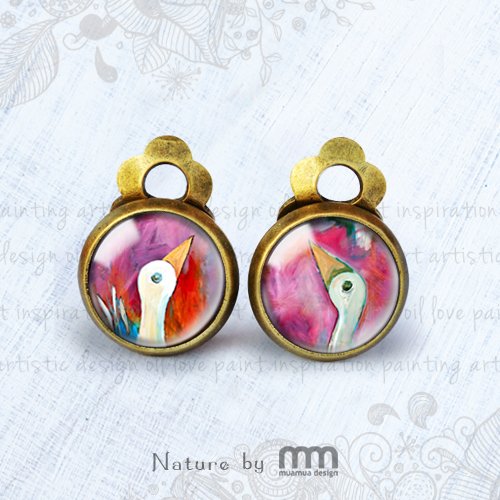 PINKY klipsy to bardzo kobiece i malutkie dzieła sztuki, które łączą nowoczesność z odrobiną antycznego powiewu. Obrazki pod szkiełkiem to miniatura autorskiego obrazu. Klipsy pasują świetnie do naszyjnika PINKY dostępnego w osobnej ofercie.