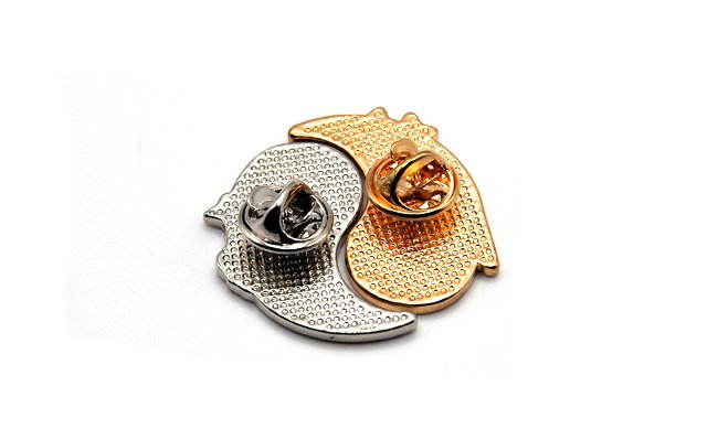 Broszki na szpilkach, blokowanych metalowymi zatyczkami.