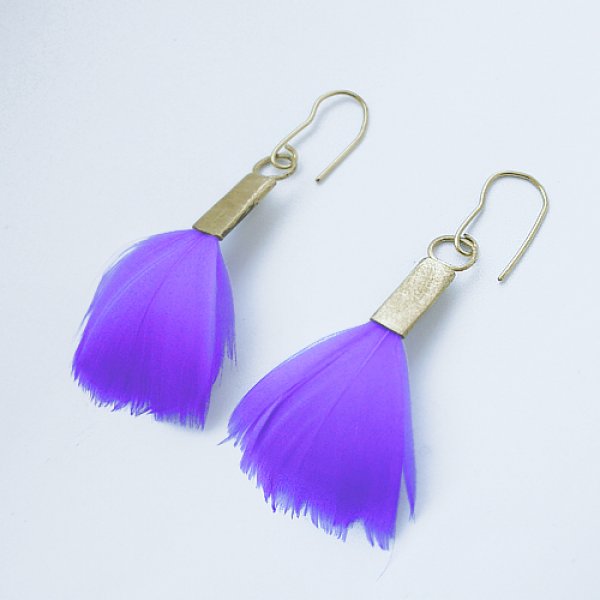 PIÓRKO - stylowy dodatek. Połączenie lekkości piórka i trwałości metalu. Metal niezwykle kontrastuje z naturalnym barwionym puchem. Kolczyki wykonane są z mosiądzu, naturalnie barwione pióra. Mosiądz - zmatowiony. Bigle otwarte - srebro pr.925,pozłacane. Długość z biglami - 7,5 cm. Szerokość - ok. 3 cm. Waga - ok. 2,5 g.