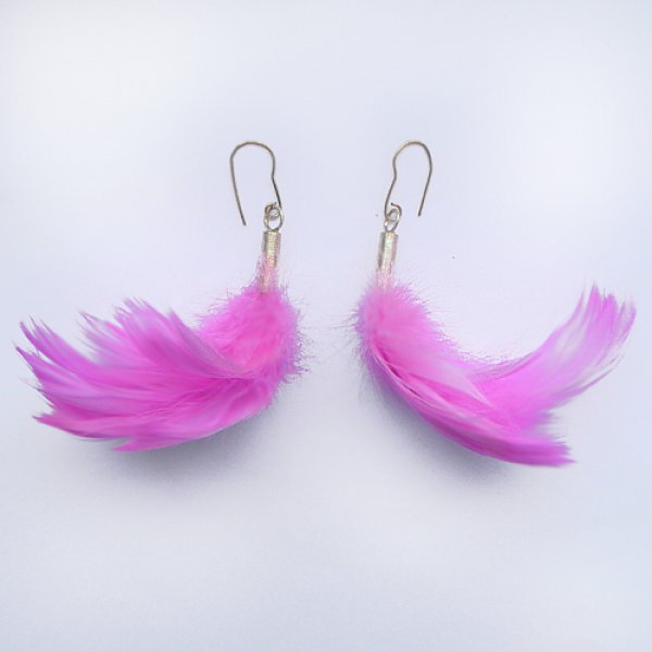 Kolczyki wykonane są z : mosiądz, naturalne barwione pióra.