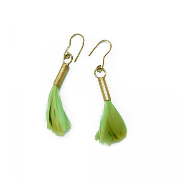 Kolczyki wykonane są z : mosiądz, naturalne barwione pióra.