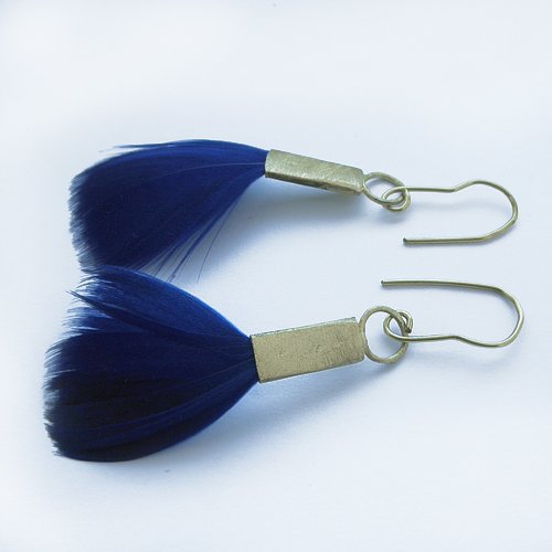 PIÓRKO - stylowy dodatek. Połączenie lekkości piórka i trwałości metalu. Metal niezwykle kontrastuje z naturalnym barwionym puchem. Kolczyki wykonane są z mosiądzu, naturalnie barwione pióra. Mosiądz - zmatowiony. Bigle otwarte - srebro pr.925,pozłacane. Długość z biglami - 7,5 cm. Szerokość - ok. 3 cm. Waga - ok. 2,5 g.