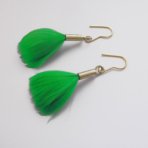 PIÓRKO - stylowy dodatek. Połączenie lekkości piórka i trwałości metalu. Metal niezwykle kontrastuje z naturalnym barwionym puchem. Kolczyki wykonane są z mosiądzu, naturalnie barwione pióra. Mosiądz - zmatowiony. Bigle otwarte - srebro pr.925,pozłacane. Długość z biglami - ok. 5,5cm. Szerokość - 2 cm. Waga - ok. 2,3 g.