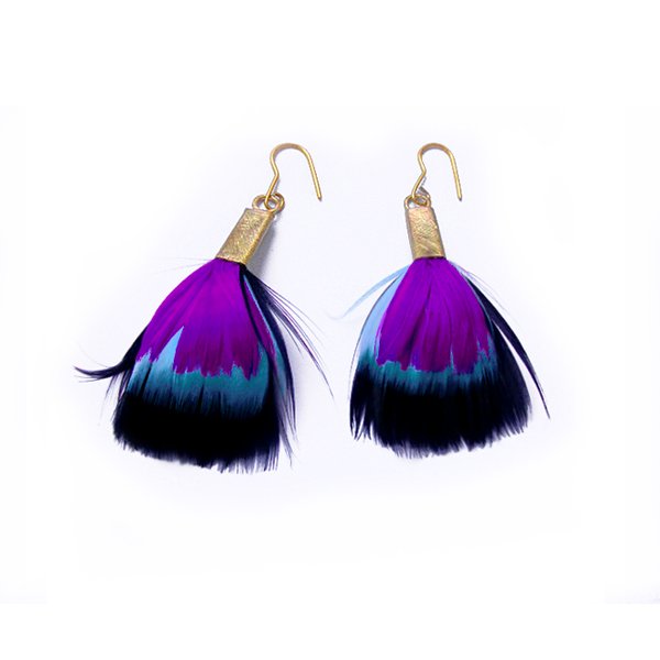 PIÓRKO - stylowy dodatek. Połączenie lekkości piórka i trwałości metalu. Metal niezwykle kontrastuje z naturalnym barwionym puchem. Kolczyki wykonane są z mosiądzu, naturalnie barwione pióra. Mosiądz - zmatowiony. Bigle otwarte - srebro pr.925,pozłacane. Długość z biglami - 7,5 cm. Szerokość - ok. 3 cm. Waga - ok. 2,5 g.