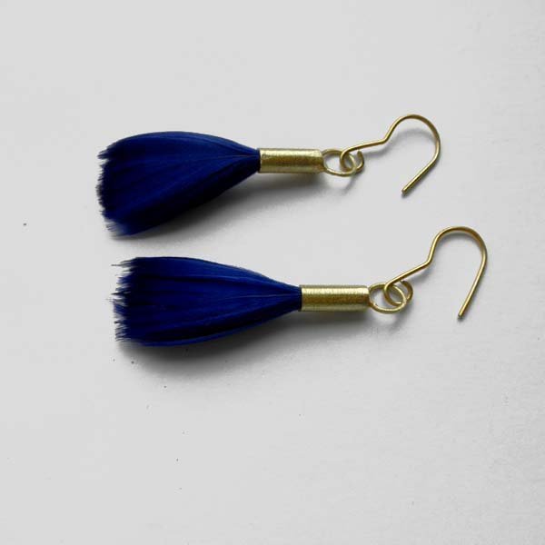 PIÓRKO - stylowy dodatek. Połączenie lekkości piórka i trwałości metalu. Metal niezwykle kontrastuje z naturalnym barwionym puchem. Kolczyki wykonane są z mosiądzu, naturalnie barwione pióra. Mosiądz - zmatowiony. Bigle otwarte - srebro pr.925,pozłacane. Długość z biglami - ok. 5,5cm. Szerokość - 2 cm. Waga - ok. 2,3 g.