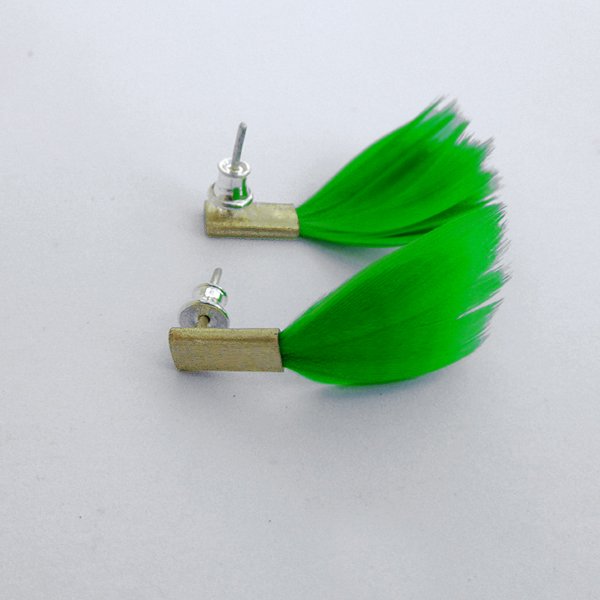 PIÓRKO - stylowy dodatek. Połączenie lekkości piórka i trwałości metalu. Metal niezwykle kontrastuje z naturalnym barwionym puchem.Kolczyki na sztyftach. Kolczyki wykonane są z :mosiądz,srebro- próby 0,925, naturalnie barwione pióra. Mosiądz - zmatowiony. Długość - ok. 3,5cm. Szerokość - 2 cm. Waga - ok. 2 g.