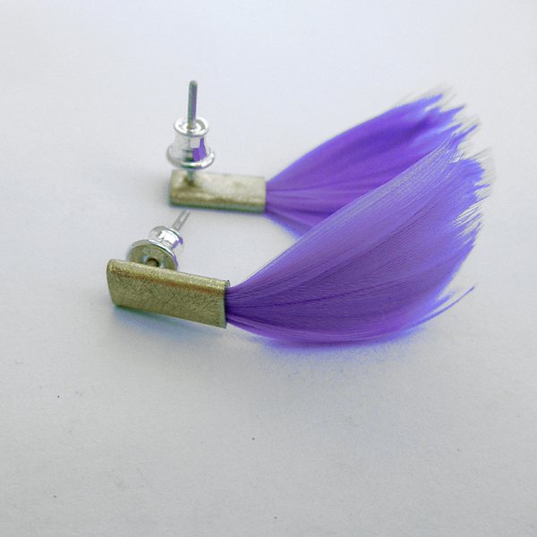 PIÓRKO - stylowy dodatek. Połączenie lekkości piórka i trwałości metalu. Metal niezwykle kontrastuje z naturalnym barwionym puchem.Kolczyki na sztyftach. Kolczyki wykonane są z :mosiądz,srebro- próby 0,925, naturalnie barwione pióra. Mosiądz - zmatowiony. Długość - ok. 3,5cm. Szerokość - 2 cm. Waga - ok. 2 g.