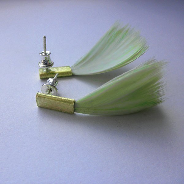 PIÓRKO - stylowy dodatek. Połączenie lekkości piórka i trwałości metalu. Metal niezwykle kontrastuje z naturalnym barwionym puchem.Kolczyki na sztyftach. Kolczyki wykonane są z :mosiądz,srebro- próby 0,925, naturalnie barwione pióra. Mosiądz - zmatowiony. Długość - ok. 3,5cm. Szerokość - 2 cm. Waga - ok. 2 g.