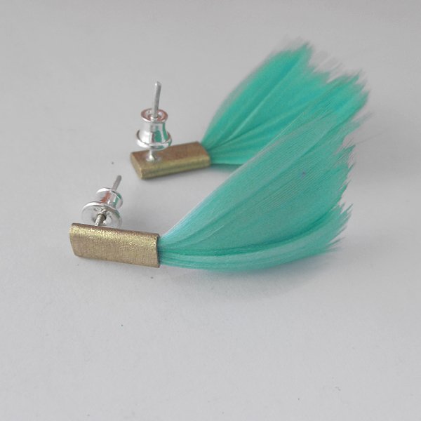 PIÓRKO - stylowy dodatek. Połączenie lekkości piórka i trwałości metalu. Metal niezwykle kontrastuje z naturalnym barwionym puchem.Kolczyki na sztyftach. Kolczyki wykonane są z :mosiądz,srebro- próby 0,925, naturalnie barwione pióra. Mosiądz - zmatowiony. Długość - ok. 3,5cm. Szerokość - 2 cm. Waga - ok. 2 g.