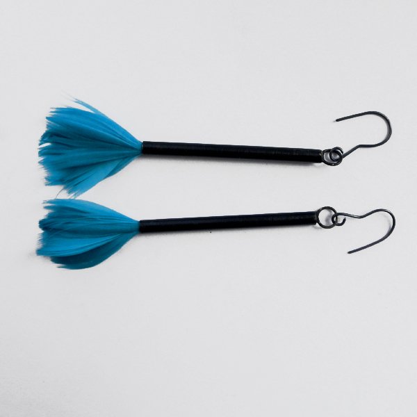 PIÓRKO - stylowy dodatek. Połączenie lekkości piórka i trwałości metalu. Metal niezwykle kontrastuje z naturalnym barwionym puchem. Kolczyki wykonane są z mosiądzu, naturalnie barwione pióra. Mosiądz - zmatowiony, oksydowany. Bigle otwarte - srebro pr.925 oksydowane. Długość z biglami - ok. 9 cm. Szerokość - 2 cm. Waga - ok. 2,8 g.. Termin realizacji zamówienia to 1-2 dni.