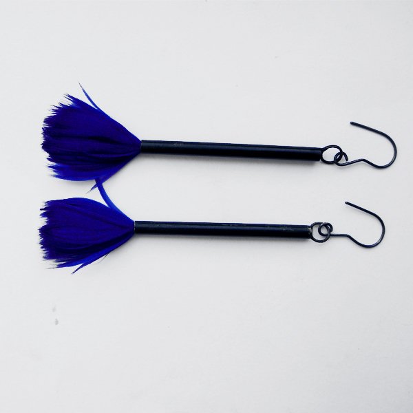 PIÓRKO - stylowy dodatek. Połączenie lekkości piórka i trwałości metalu. Metal niezwykle kontrastuje z naturalnym barwionym puchem. Kolczyki wykonane są z mosiądzu, naturalnie barwione pióra. Mosiądz - zmatowiony, oksydowany. Bigle otwarte - srebro pr.925 oksydowane. Długość z biglami - ok. 9 cm. Szerokość - 2 cm. Waga - ok. 2,8 g.. Termin realizacji zamówienia to 1-2 dni.